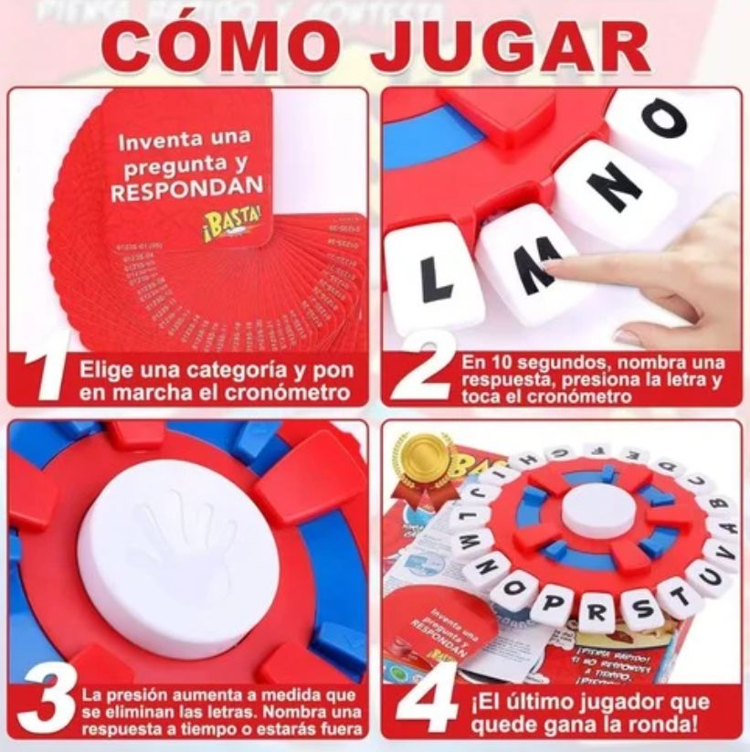 Elijes una carta de tema y cada jugador debe decir una palabra relacionada que empiece con cada letra del abecedario. El que se queda sin palabras para continuar el juego PIERDE!!