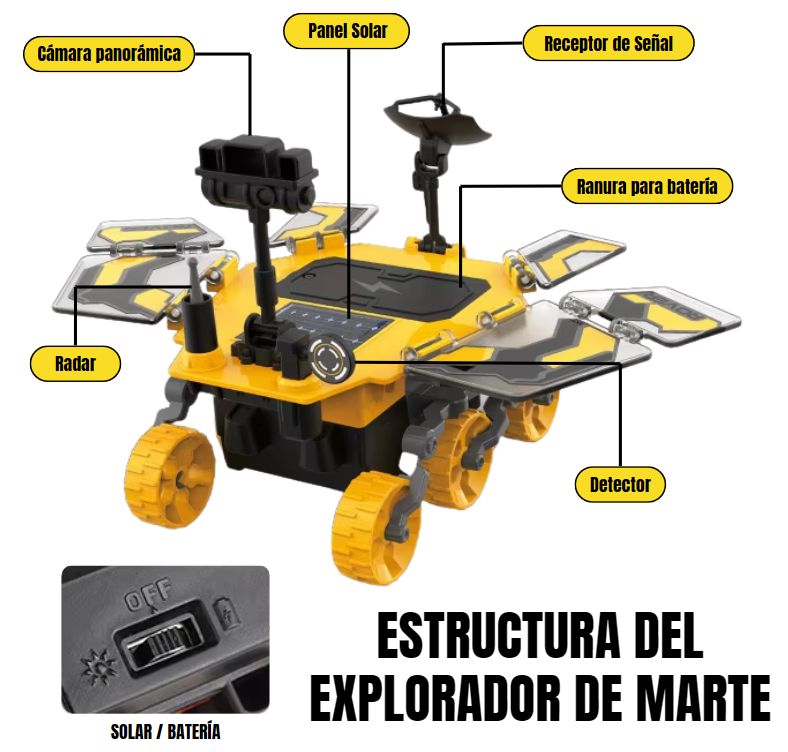 Este explorador solar de Marte despierta la curiosidad científica en los niños, convirtiendo el juego en una aventura educativa. Sin necesidad de baterías, enseña principios de energía solar mientras exploran el universo desde casa.