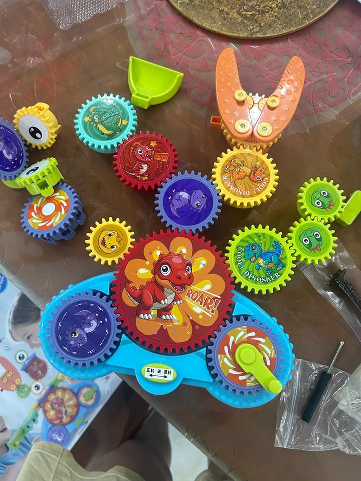 - Incluye piezas con engranajes y figuras de dinosaurios.