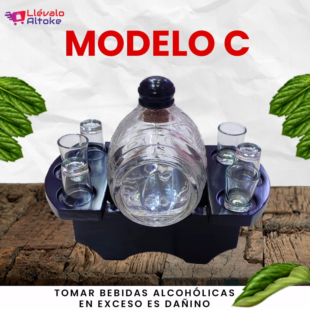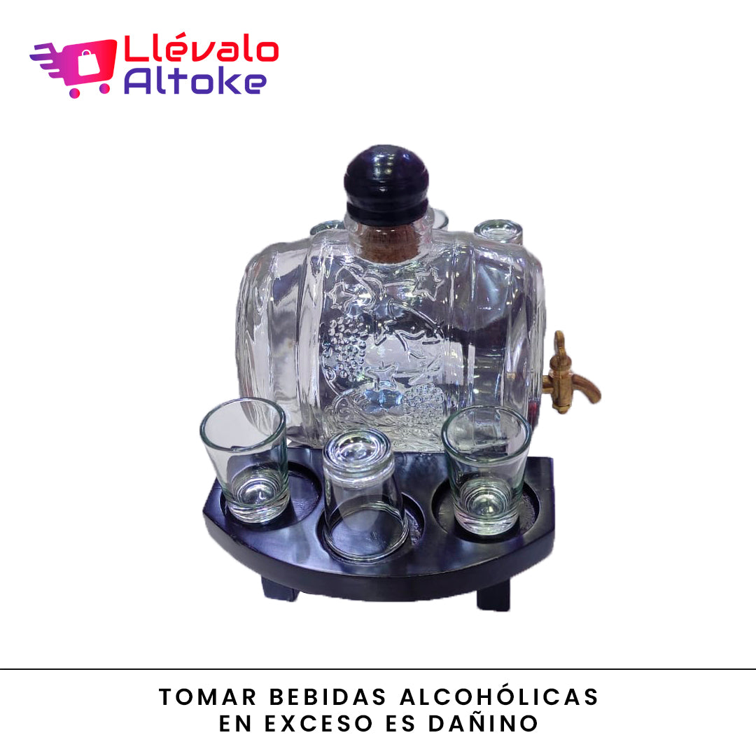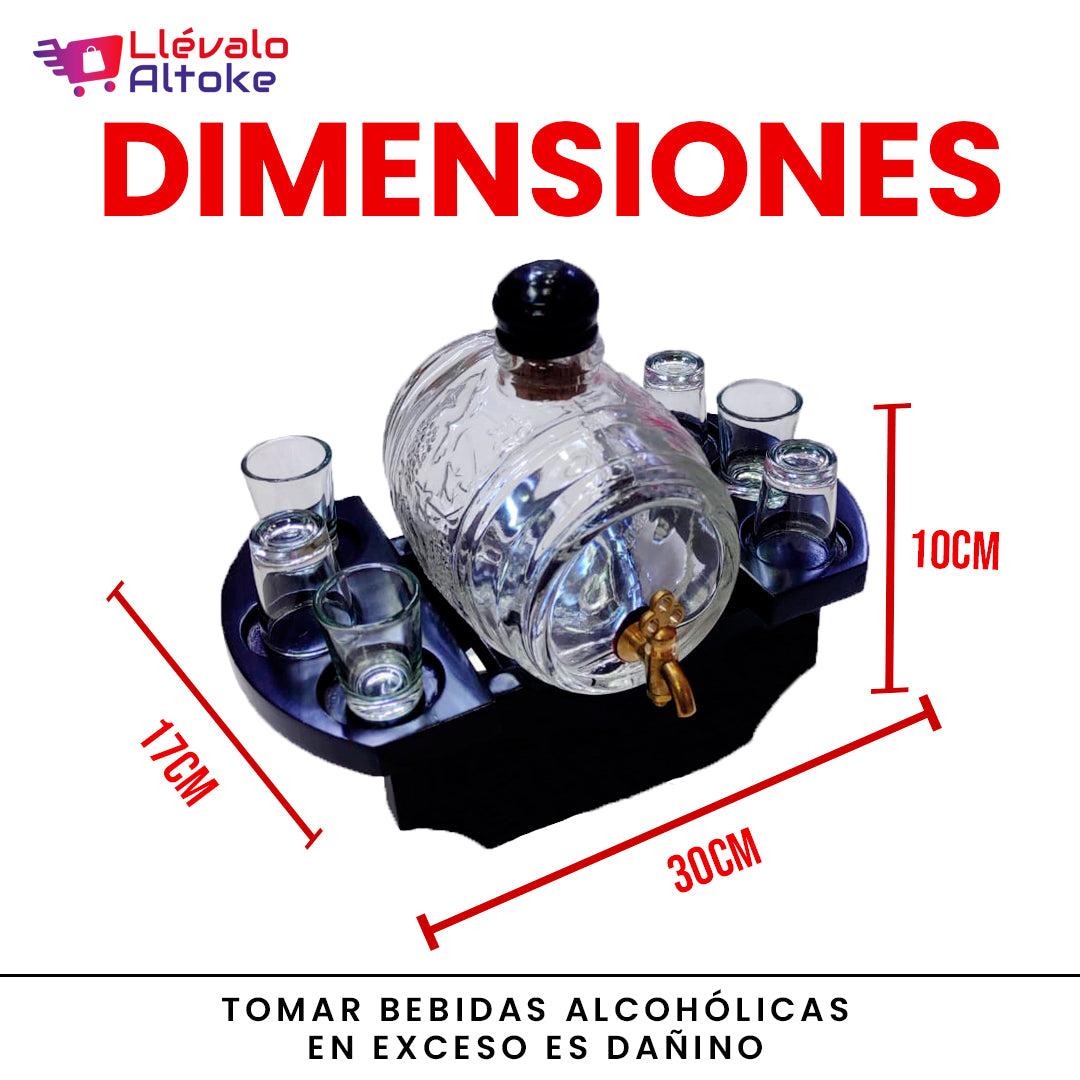😁 Viene con 4 mini copas de vidrio o 6 shots de vidrio.