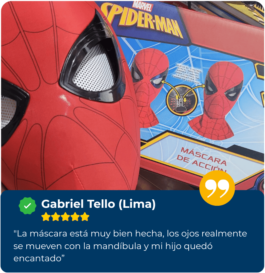 👀 Ojos que reaccionan contigo: los ojos se mueven cuando abres o cierras la boca, como si verdaderamente fueras Spiderman.