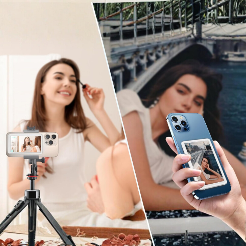La mayoría de selfies y videos se hacen con la cámara frontal, sacrificando calidad. Con esta pantalla, puedes grabarte usando la cámara trasera (de mayor resolución), mientras ves lo que estás filmando en vivo. Ideal para creadores, influencers y amantes del contenido que quieren verse bien sin complicaciones.
